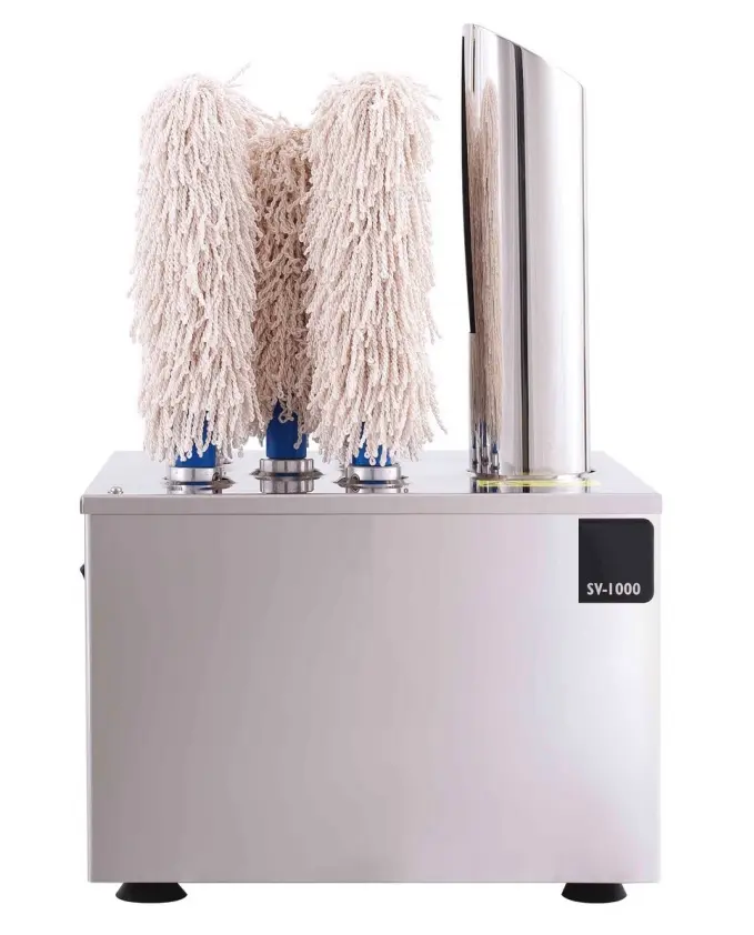 Máquina para secar y abrillantar copas y vasos que elimina la dura tarea del secado manual, aportando al proceso mayor limpieza e higiene además de un acabado profesional en cuestión de segundos.