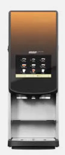 Equipada con tres o cuatro tolvas, pantalla iluminada, bandeja antigoteo, indicador automático de descalcificación, programa de descalcificación y aclarado.