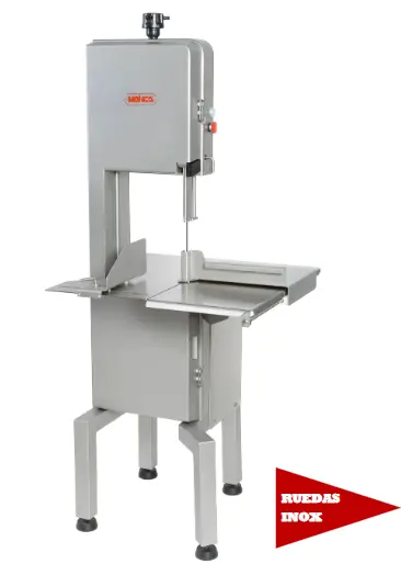 Potencia 2 HP / 1,5 kw. Altura de corte 310 mm. Construida totalmente en acero inox. Ruedas en inox. Longitud de cinta 2280 mm.