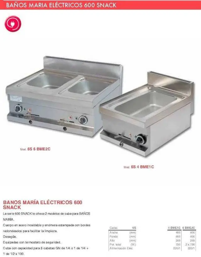 4 Cubetas GN 1/4. Potencia 2400 W. Valido para cubetas de 150 mm. de profundidad. Ref. 7635515