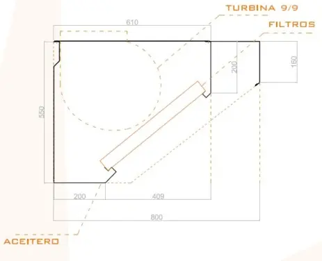 Con 2 turbinas 9/9 de 1/2 CV. Filtros de acero lamas 490*490*50 mm.