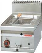 Las freidoras a gas se caracterizan por la disposición de los tubos calentadores colocados en el interior e la cuba, lo que permite reducir los tiempos de trabajo. Cada cuba está dotada con 2 potentes quemadores tubulares de acero inox. Un sistema de turbulencia permite ralentizar el flujo de la llama y aumentar el rendimiento un 50 %. Quemadores con combustión optimizada con válvula de seguridad con termoelemento y termostato de seguridad, llama piloto protegida y encendido piezoelectrico. Regulación de temperatura con siete posiciones de 110 a 190 ºC.