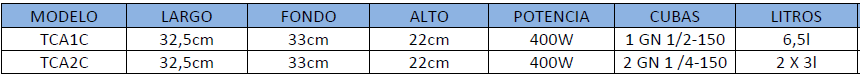 2 Cubas GN 1/4-150. Potencia 400 W.