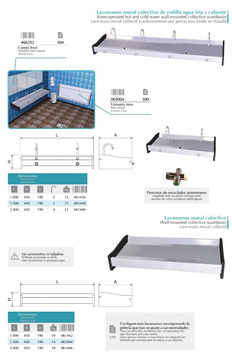 - Peto trasero, dispensador de toallas en inox, dispensador de jabón de 1,2 lt inox, provisto de mezclador antiretorno, necesita intalación de toma de agua y desagüe.
