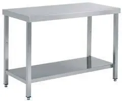 Mesas de trabajo de acero inoxidable para hostelería y laboratorios, prácticas, resistentes y de gran calidad, ideales para cualquier tipo de cocina industrial.