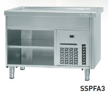 Hueco para 3 cubetas GN. Potencia 223 W. Temperatura +4ºC/ +4ºC.