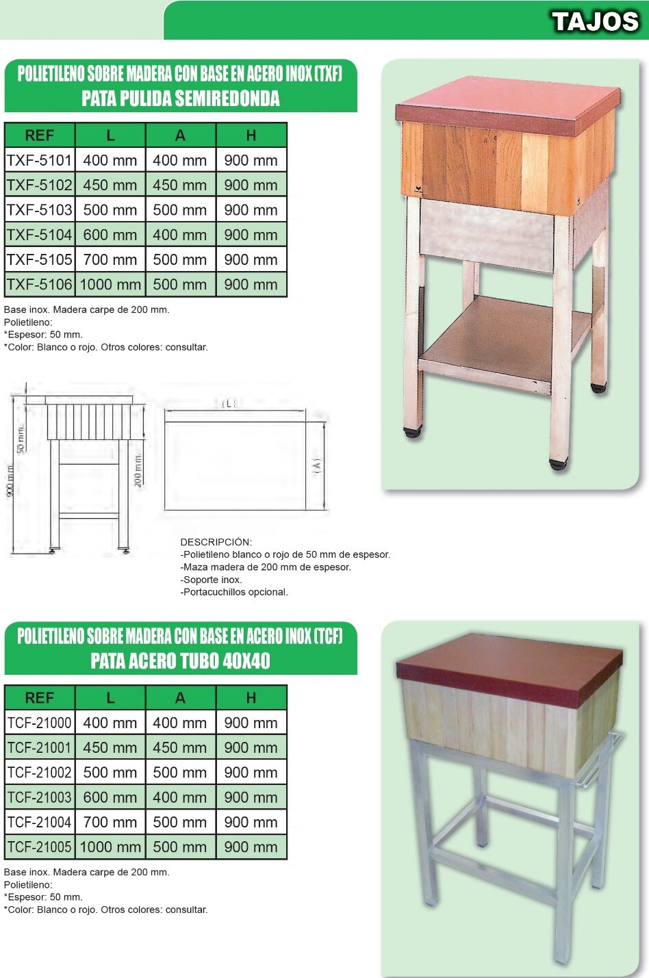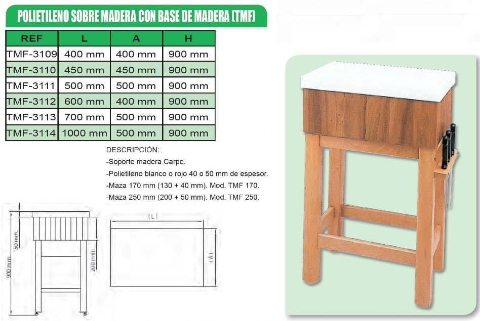 TAJOS POLIETILENO SOBRE MADERA CON BASE ACERO INOX
