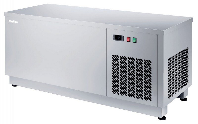 - Exterior en acero inox AISI 304 (EAPI) o acero plastificado (EAP). - Serpentín interior en acero inox AISI 304. - Aislamiento de poliuretano inyectado, densidad 40 Kg/m³, bajo GWP y cero efecto ODP. - Llenado automático por boya, diametro 1/2”. - Agitador de agua interior. - Control digital electrónico. - Encimera desmontable. - Refrigerante R-404A. - Rebosadero de seguridad diametro 3/4”.
