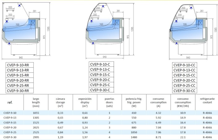Modelo CVEP-9-20 Medidas: 2025 x 940 x 1300 mm.