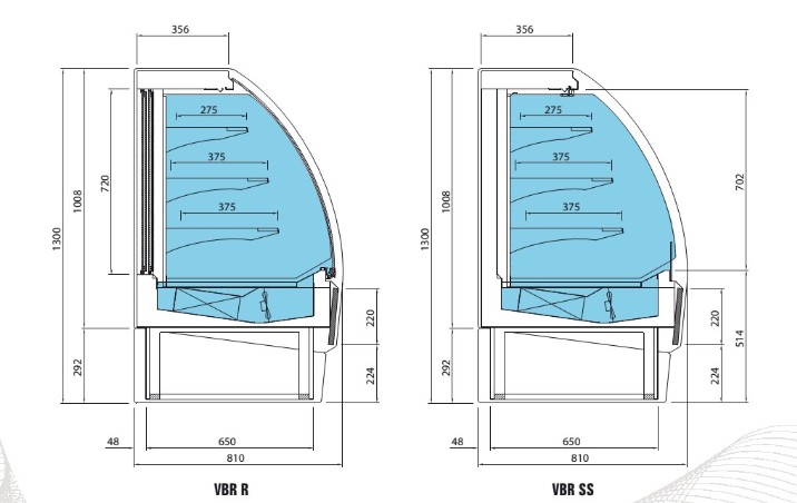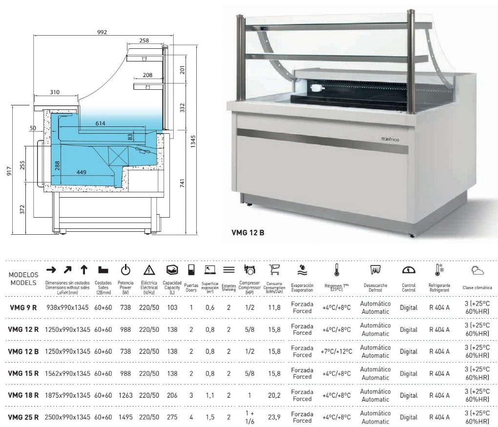 • modelos de 1000 y 1300 mm sin reserva; frio solamente en la exposición (exp)